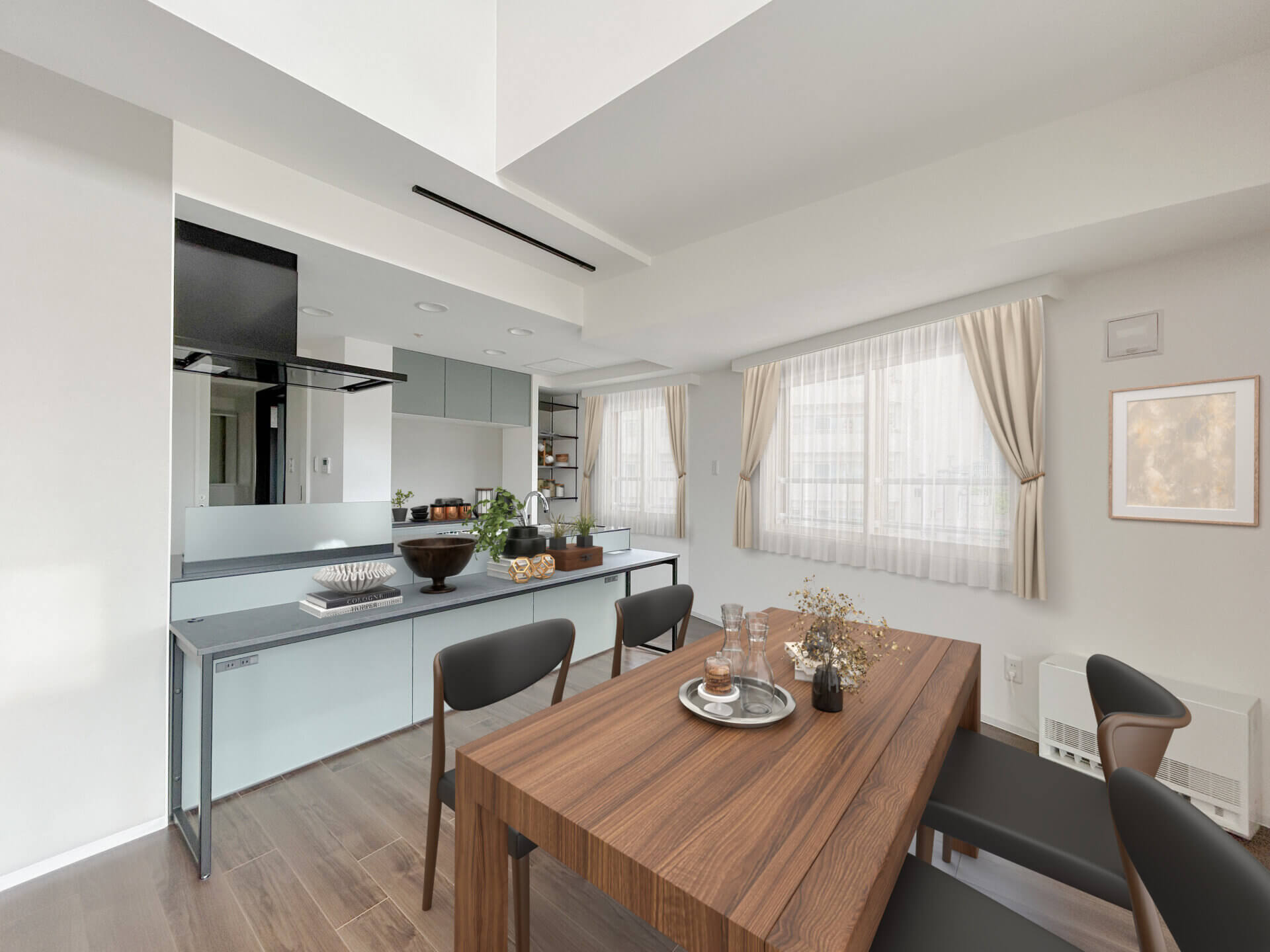 温かな色味は残しつつ、建具や設備をシャープなデザインに統一することで、都会的で広がりを感じるLDKに仕上げました。CG家具によるシミュレーションで、実際の暮らしをより鮮明にイメージしていただける仕上がりです。フルリフォームのご相談はどうぞお気軽にご連絡くださいませ!